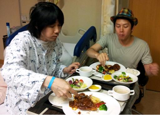 김장훈은 앞서 19일에도 미투데이에 자신의 병실에서 싸이와 함께 식사하는 사진을 게재했다.