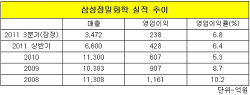 삼성정밀화학의 3분기 실적이 전 분기 대비 소폭 하락했지만 전년 동기 대비로는 20% 이상의 성장세를 거둔 것.