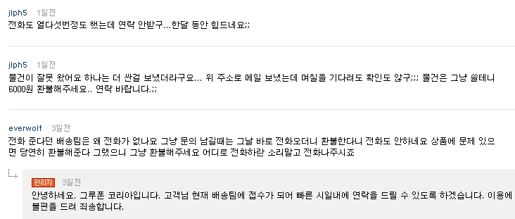 혹시나 싶어 사이트를 방문해보자 배송지연을 겪은 사람은 안 씨 혼자만이 아니었다. 배송지연 및 업체와 연락이 닿지 않는다는 사실에 대한 불만이 폭주하고 있었다.더욱이 그 과정에서 구매자들 사이에 '가품논란'까지 일어 안 씨 뿐 아니라 구매자들을 혼란스럽게 했다.