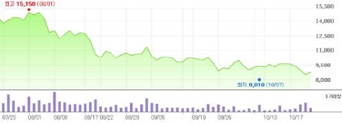실적과 재무건전성 악화는 자연스레 주가 하락으로 이어졌다.