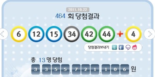 300억의 주인공 탄생 이목을 집중 시킨 제464회 나눔로또 추첨 결과 1등 당첨자는 13명으로 각각 33억5천572만원씩 받게 됐다.