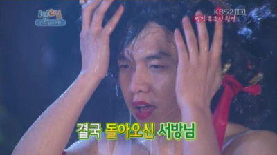이승기는 욕조에 담긴 찬 물을 바가지로 몸에 뿌리는 열연을 펼쳤으나 마지막에 결국 “이게 무슨 영화야”라며 감독 이수근에게 물을 끼얹으며 화를 내 좌중을 폭소케했다.