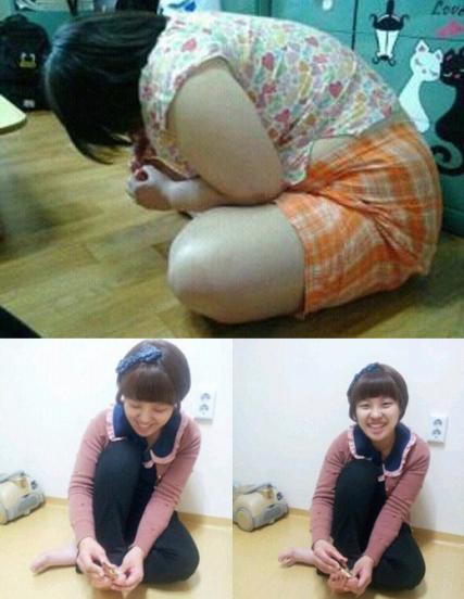 이승윤이 공개한 권미진의 38kg 감량 사진에는 권미진의 다이어트 전과 후의 발톱을 깎는 모습이 다르다.