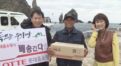 이종인 롯데홈쇼핑 고객지원본부장과 쇼호스트가 지난 21일 직접 독도를 찾아 주민 김성도(71) 씨가 주문한 상품을 전달했으며 이후로도 롯데홈쇼핑, 롯데아이몰, 카탈로그 등을 통한 주문 시 무료 배송을 약속했다.