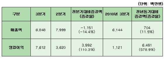 이스트소프트는 지난 3분기에 68억5천만원의 매출액과 76억1천만원의 영업이익을 달성했다고 21일 밝혔다. 지난해 같은 기간과 비교해 매출액은 11.5%, 영업이익은 578.9% 증가한 수치다.