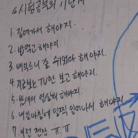 최근 각종 온라인 커뮤니티 게시판에는 ‘시험공부 7단계’라는 글귀가 적힌 사진이 게재됐다.