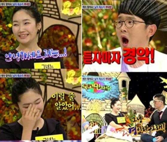 이 날 출연한 남자 목소리의 여대생 방지혜(25) 씨는 여성스러운 외모와는 달리 굵직한 남자 목소리로 인사를 했다.