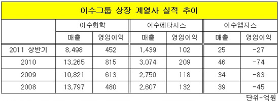 지난 2분기엔 '큰 손'으로 불리는 국민연금이 이수화학과 이수페타시스의 지분을 각각 6.62%와 6.41% 취득했을 정도다.
