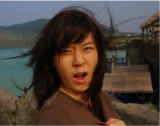 사진에서 김하늘은 머리카락을 휘날리며 엽기적인 표정을 짓고 있다.