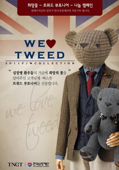 한편 ‘트위드 런’을 2011 F/W 메인 테마로 선정한 TNGT는 스마트한 세상을 살아가는 현대인들의 관심사인 사랑(love), 일(work), 관계(relationship)에 대한 다양한 생각을 위트 넘치는 스타일로 재조명하여 세련미를 더했다. 트위드는 굵은 양모를 사용해 직조한 소재를 말하며 보온성이 뛰어나 가을에 입기 좋다.