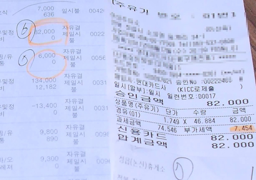 주유 영수증에는 제대로 표시된 부가세가 카드이용내역서에는 ‘0원’으로 표시되어 있다며 소비자가 의문을 제기했다.