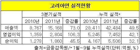 3분기 영업이익은 2천804억원으로 전년동기(1천359억원)보다 무려 106.3%나 급증했다. 이는 지난 2분기(2천301억원)보다도 21.9%나 증가한 수준이다. 순이익은 1천860억원으로 지난해 같은기간(1천278억원)보다 45.5% 늘어났다.