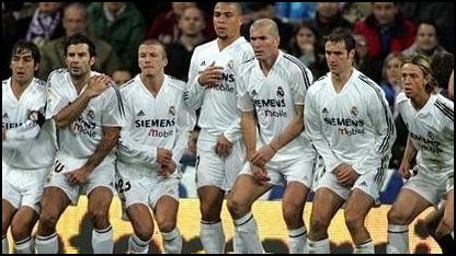 문제의 사진은 바로 수천억원의 몸값을 받는 국제적 축구 스타들이 쌓은 벽이다. 공개된 사진은 지난 2000년 초중반에 스페인 레알 마드리드가 '갈락티코' (스페인어로 은하수/스타(별)들의 모음) 정책으로 전세계 정상급 스타들을 대거 영입한 후 이 선수들이 수비벽을 쌓은 모습이다.