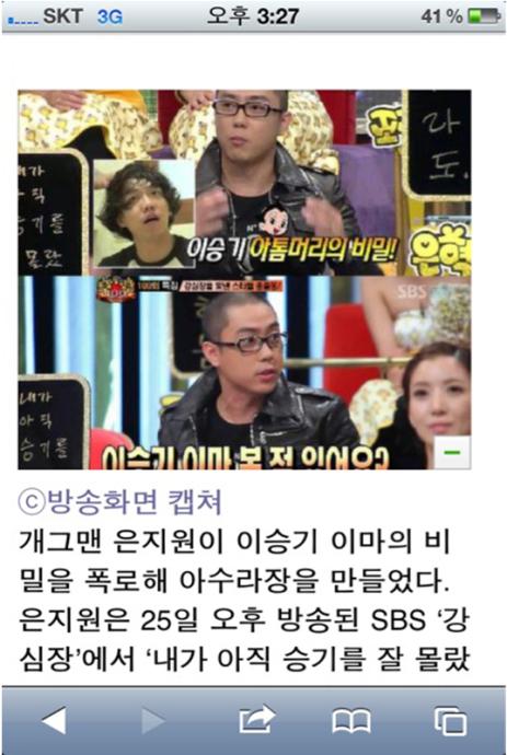 공개된 사진에는 한 매체의 기사를 캡쳐한 장면으로 이 기사에는 은지원을 개그맨 은지원으로 설명했다.