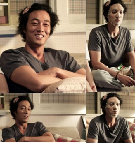 사진에서 소지섭은 마스크 팩을 하고, 꽃핀을 꼽은 채 미소 짓고 있다.