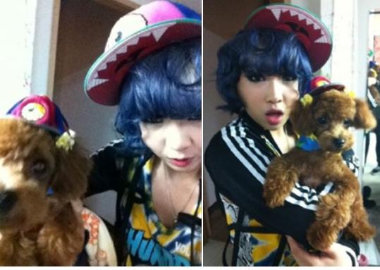 그룹 2NE1 공민지가 자신의 강아지와 커플 모자를 함께 쓴 사진을 공개했다.