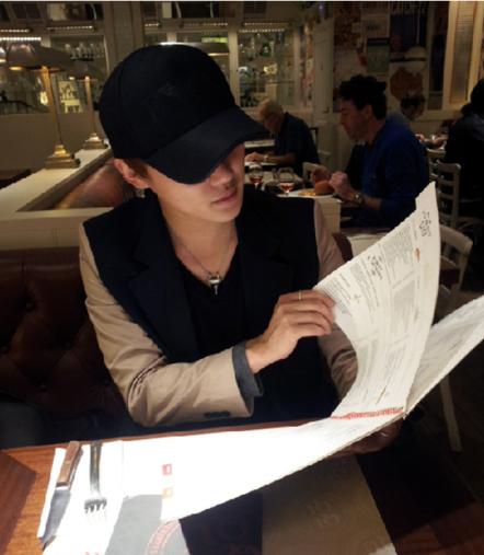 이는 김준수가 혼자 레스토랑에서 메뉴판을 들여다보고 있는 사진이다.