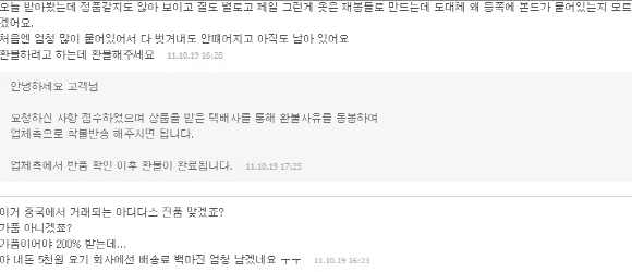 이어 “비교사진이나 관련 서류를 올릴까도 생각했지만 문제가 없는 제품에 그렇게 까지 할 필요가 없다싶어 올리지 않았다”며 “무료반품 공지 번복은 회사 내 커뮤니케이션 잘못으로 일어난 일”이라고 해명했다.