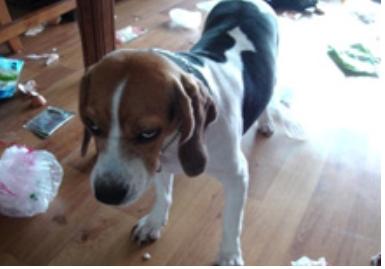 악마견의 패기로 알려진 사진 속에는 합성인지 실제인지 분간하기 힘들정도로 매서운 눈으로 노려보는 비글 한 마리와 온 집안이 쓰레기로 엉망이 된 상황이나 어이없는 웃음을 안겨주고 있다.
