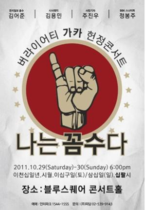 29일 서울 한남동 공연장에서 열린 '나꼼수' 첫 번째 콘서트에서 김어준 총수, 주진우 시사IN 기자, 김용민 시사평론가, 정봉주 전 의원이 출연해 '눈 찢어진 아이'의 정체를 언급했다