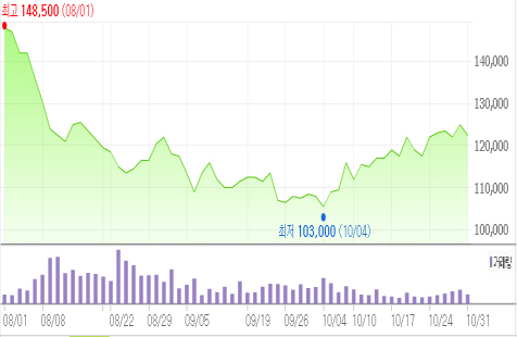 지난 8월 1일의 14만8천500원을 회복하기는 요원해보인다.