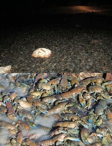 이 하천은 호주 퀸즐랜드와 사우스 오스트레일리아의 경계 부분에 위치해있다. 공개된 사진에는 수많은 가재들이 자리싸움을 하느라 정신이 없었다.