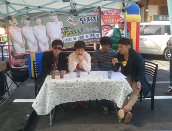 방송에서 타이즈를 입던 이들은 사인회장에 멋진 평상복 차림으로 나타났지만 주위에는 단 한명의 팬도 눈에 띄지 않는 모습. 사진은 먼 산을 바라보는 듯 멍한 표정까지 담아내 웃음을 자아낸다.