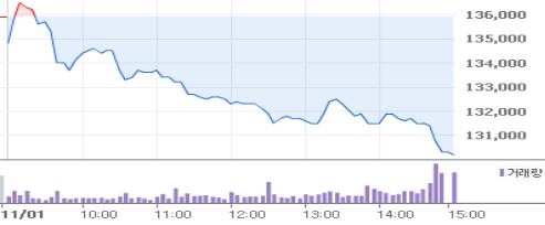 한편, 3분기 실적이 공개되며 다음 주가는 큰 폭으로 하락했다. 다음은 1일 전거래일 대비 5천700원 하락한(-4.19%) 13만200원으로 장을 마감했다.