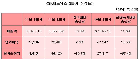 SK네트웍스 측은 지난 분기와 비교해 80.7% 하락한 당기순이익에 대해 "유로존 위기에 따른 3분기말 달러화 강세로 환평가손실이 발생했기 때문"이라며 "원화대비 달러화 강세에 따른 환평가손실 약 100억원, 지분법 대상 일부 투자회사의 일시적 환평가손실로 인한 지분법 손실 약 200억원의 규모가 반영됐다"고 전했다.