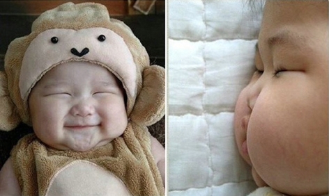 수요일 아기는 점차 웃음을 지어보이고 금요일 사진은 정말 활짝 웃고 있다.