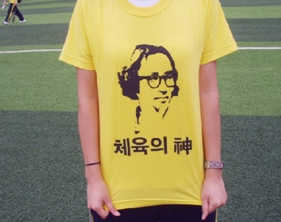 사진 속에는 10대 소녀가 정재형의 얼굴이 새겨진 노란색 티셔츠를 입은 채 앞면에는 ‘체육의 신(神)’, 뒷면에는 정재형 특유의 웃음소리인 ‘아하항항항항~*’이 새겨져 있었다.