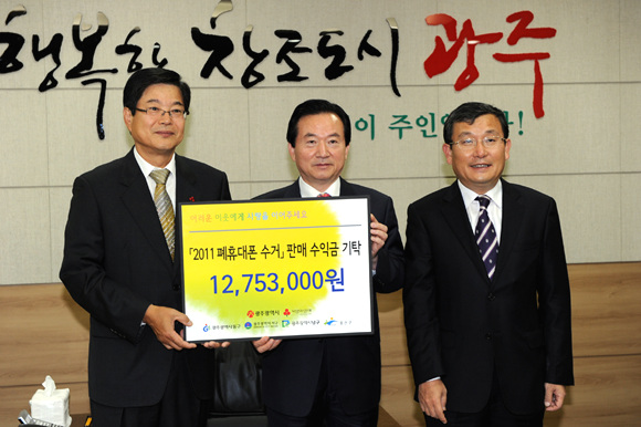 강운태 시장은 2일 오전 10시 시청 비즈니스룸에서 수입금 중 1천275만원을 광주사회복지공동모금회에 기탁하는 행사를 가졌다.