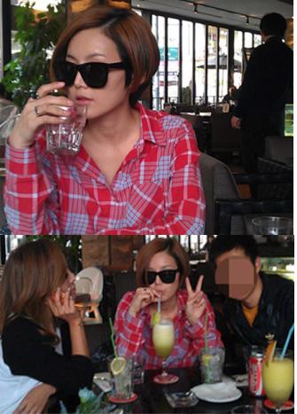 사진에서 미료는 선글라스를 쓰고 음료를 마시고 있는 모습이 카리스마를 풍긴다.