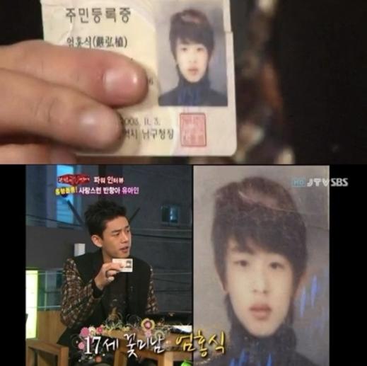 이날 방송에서는 유아인이 가방 안에 들어있는 소지품을 공개하던 중 17살에 찍은 주민등록증 사진이 눈에 띄었다.
