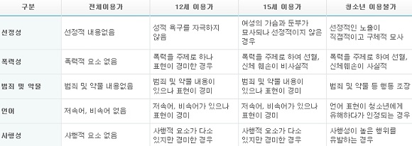 ◆ 콘텐츠 가격은 등급 분류 기준서 제외?
