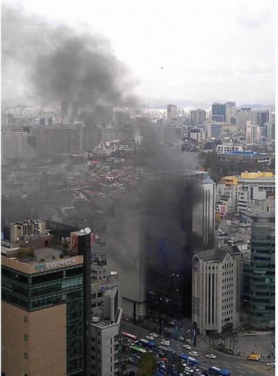 소방당국과 경찰은 강남역 빌딩의 화재가 누전이나 담배꽁초 투기로 화재가 발생한 것으로 보고 정확한 원인을 조사 중이다. (사진-연합뉴스)