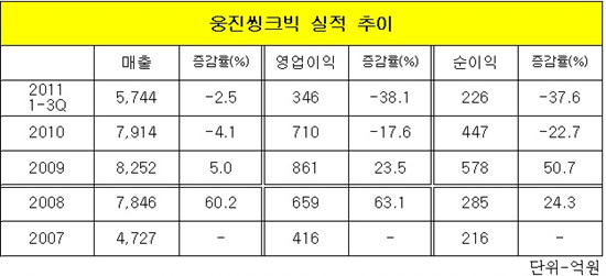 2009년 8천252억원이던 매출은 작년 7천914억원으로 4.1% 줄었다. 영업이익도 861억원에서 710억원으로 13% 떨어졌다. 순이익은 22.7% 급감했다.