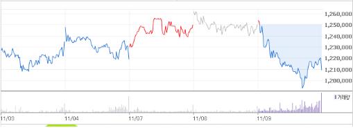 9일 아모레퍼시픽 주가는 전 거래일 대비 4만1천원(-3.28%) 떨어진 120만9천원으로 장을 마감했다. 지난 10월 130만원대를 넘기며 52주 최고가를 기록하던 주가는 최근 실적둔화와 함께 조금씩 힘이 빠지는 모습이다.
