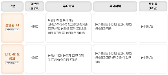 기본요금을 포함한 요금제 구성 역시 3G와 달라졌다.