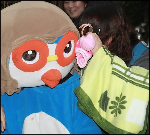 10일 부산 수영구 망미동 부산시교육청 23 고사장인 덕문여고 앞에는 어린이들의 대통령으로 불리는 뽀로로 인형이 등장해 수험생들을 위한 응원전에 가세했다.