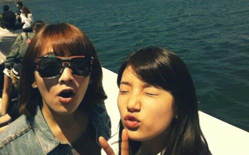 카라 강지영과 미쓰에이 수지가 함께 찍은 셀프 카메라가 화제다.