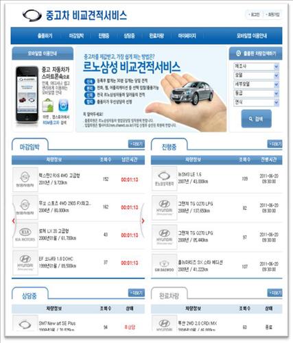 ‘중고차 비교 견적시스템’은 국내 자동차 업계 처음 선보이는 시스템으로, 이 서비스를 통해 고객들이 신차 구입과정에서 발생하는 중고차를 짧게는 30분 길게는 1일만에 전국 400여명의 검증된 중고차 딜러들의 입찰을 거쳐 매각할 수 있다.