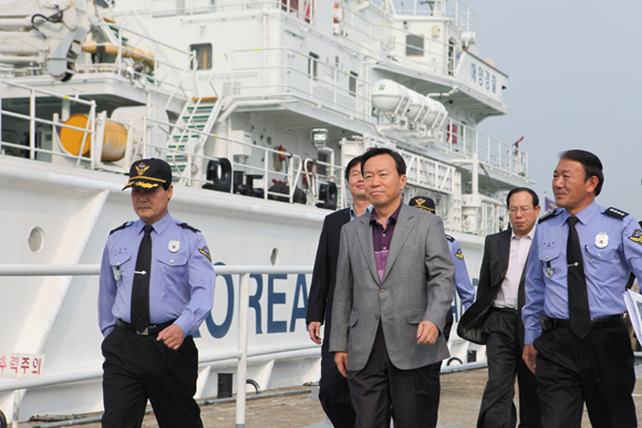 목포해양경찰서(서장 박성국)에 따르면 지난 13일 모 청장은 첼린저를 이용, 최근 황금어장이 형성되어 중국어선이 조업하고 있는 서남해 EEZ(배타적 경제수역) 해상을 점검한 후, 목포해양경찰서 상황실을 방문해 중국어선 조업현황 및 대응방안 등을 보고받았다.