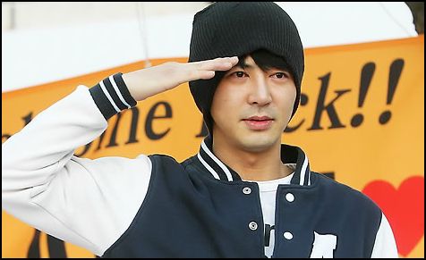 전진은 14일 오전 서울 강남구 도시관리공단에서 100여명의 국내외 팬들의 축복 속에 소집해제 신고식을 가졌다.
