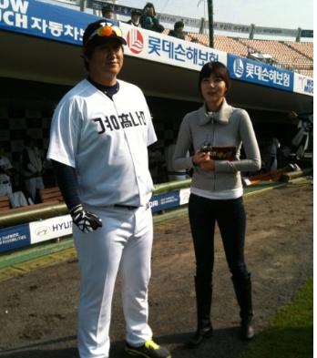 지난 13일 이수정은 자신의 미투데이에 “부산 야구 라이벌 빅매치에서 이대호 선수 인터뷰 중입니다”며 “저도 작아 보이죠”라는 글과 함께 사진한 장을 올렸다.