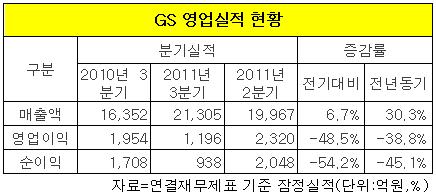 이로써 GS의 3분기 누적 매출액은 6조2천107억원으로 지난해 동기(4조4천765억원)에 비해 38.7% 증가했다. 영업이익도 3분기 7천735억원으로 지난해 같은 기간(3천939억원)보다 56.6% 불어났다.