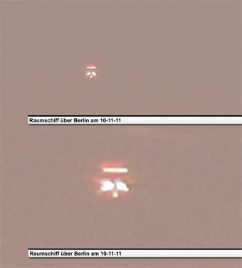 공개된 영상은 지난달 10일 독일 베를린에서 촬영된 것으로 전해진 아직 어둠이 내려앉기 전인 초저녁, 베를린 상공에 나타나 독특한 불빛을 발산하는 한 비행물체를 담고 있다.