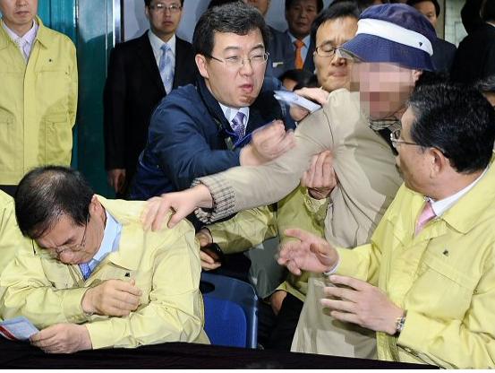 박원순시장 폭행 봉변.."빨갱이"라며 목덜미 때려