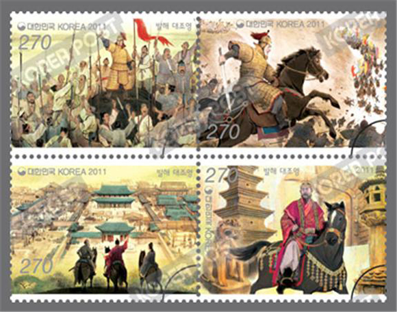 우표는 당나라에 대항하는 고구려 유민, 당나라 군대 격파, 발해 건국, 해동성국 발해를 표현하고 있다. 발해는 698년에 대조영이 고구려 유민과 말갈족을 규합해 세웠다.