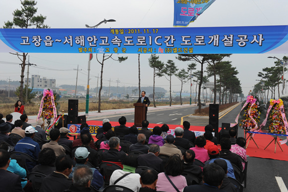 고창군이 개발촉진지구 지원사업으로 추진한 서해안 고속도로 IC에서 고창읍으로 진입할 수 있도록 연결한 도로가 17일 개통됐다.